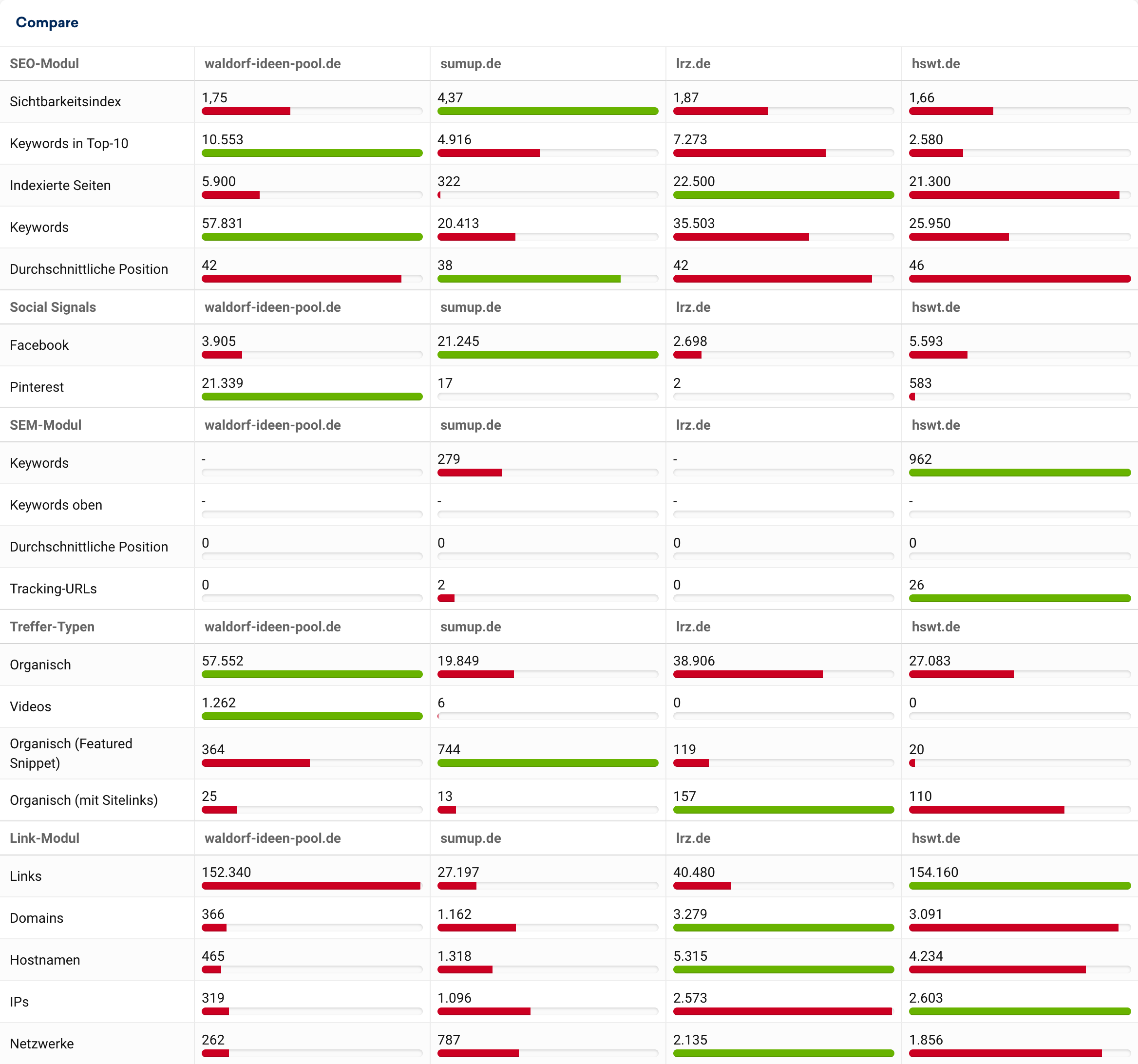 | Domain | Sichtbarkeit alt | Sichtbarkeit neu | Veränderung |