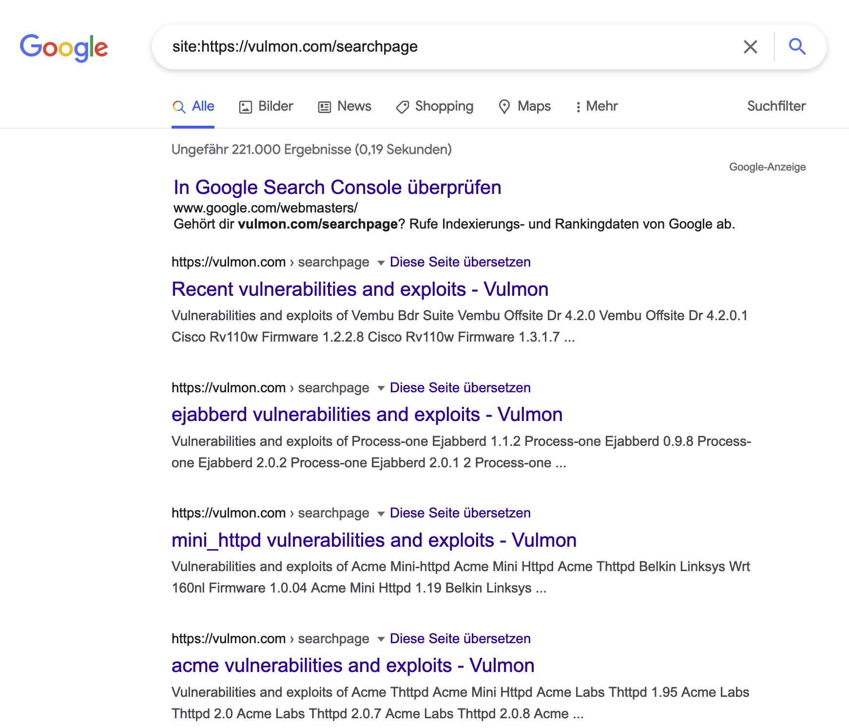 Im Falle von Vulmon bedeutet dies, dass man eine Suchmaschine für Schwachstellen gebaut hat, mit denen Nutzer nach bekannten Schwachstellen und Anfälligkeiten zu Firmen oder Software-Produkten suchen können und diese in Form von Alerts kostenpflichtig abonnieren können. Zu jeder Firma, jedem Produkt und jedem CVE-Eintrag gibt es eine Landingpage mit aggregierten Inhalten. CVE steht für Common Vulnerabilities and Exposures und ist ein dem US-amerikanischen National Cybersecurity FFRDC unterstelltes Referenzier-System für Sicherheitslücken und andere Schwachstellen in Computersystemen.