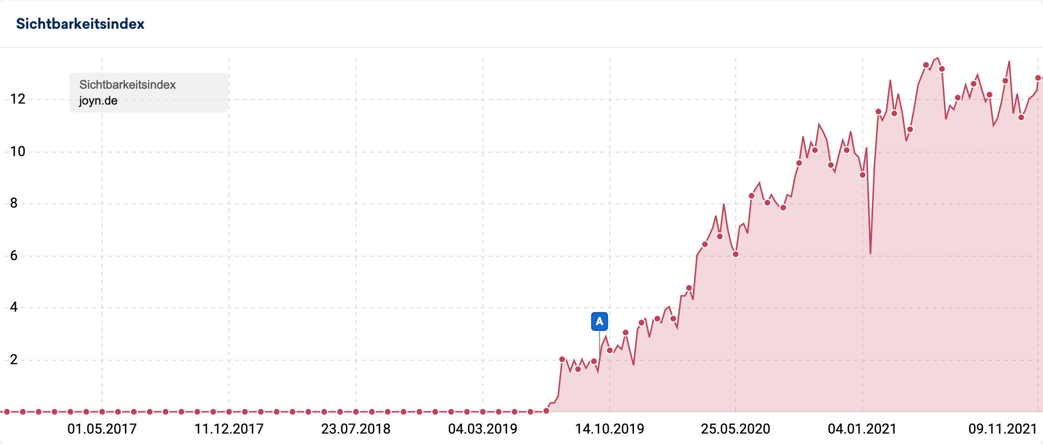 Die Sichtbarkeit von joyn.de entwickelt sich auch ohne Weiterleitungen von maxdome ziemlich positiv: