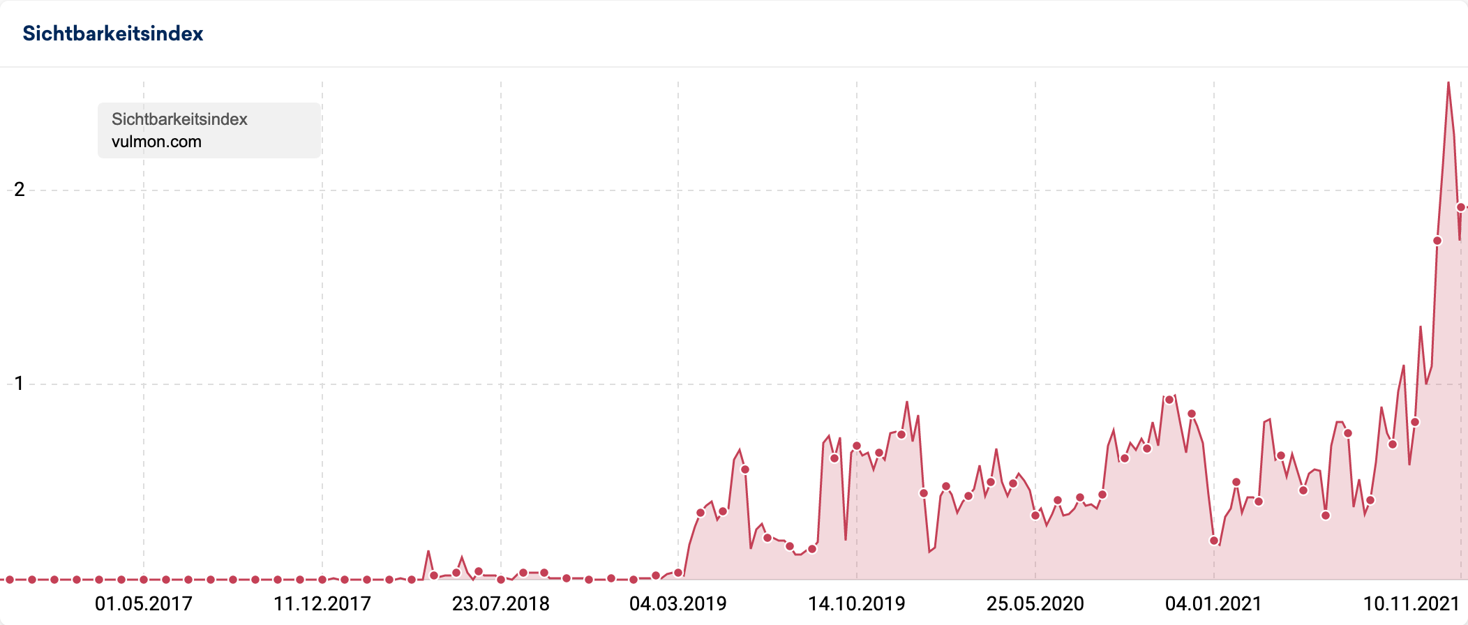 Auf dem Dritten Platz liegt eine Wiki-Spam-Domain, die jedoch ihre Sichtbarkeit bereits wieder verloren hat. Wie bereits beim Aufstieg der Wiki-Klone im Juni 2021 sieht man wieder, dass man mit vielen, wenn auch kopierten Inhalten und vielen, wenn auch schlechten Backlinks, zumindest kurzfristig Sichtbarkeit generieren kann.