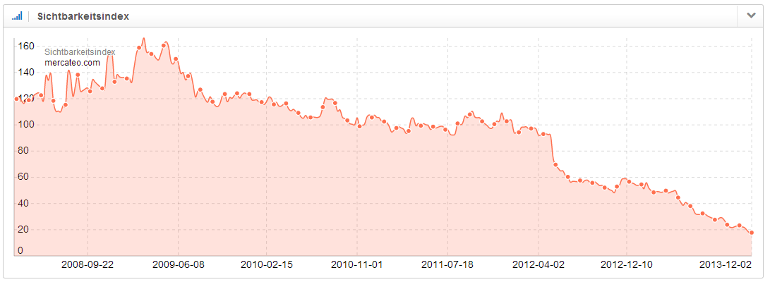 Die Beschaffungsplattform für Geschäftskunden, mercateo.com, befindet sich weiter im Sinkflug und verlor weitere zwanzig Prozentpunkte in ihrer Sichtbarkeit. Scheinbar konnte man den seit Mitte diesen Jahres anhaltenden Negativtrend noch immer nicht stoppen.