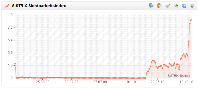 Neben den monatlichen IndexWatch-Beiträgen, in denen es um die Auf- und Absteiger des vergangen Monats ging, gibt es traditionell am Jahresanfang auch immer die Übersicht über die größten Verschiebungen im Google-Index auf Jahressicht– und genau darum geht es in diesem Posting. Anfangen möchte ich mit den Aufsteigern 2010. Die Zahlen basieren wie üblich auf dem SISTRIX Sichtbarkeitsindex und spiegeln damit die Präsenz in den Google-SERPs wieder. Domains, die Ende 2009 kurzzeitig eine Penalty hatten und deswegen in diese Liste gerutscht wären, habe ich nicht aufgenommen, da diese Einträge nicht wirklich zeigen, was im letzten Jahr gut bei Google ankam.