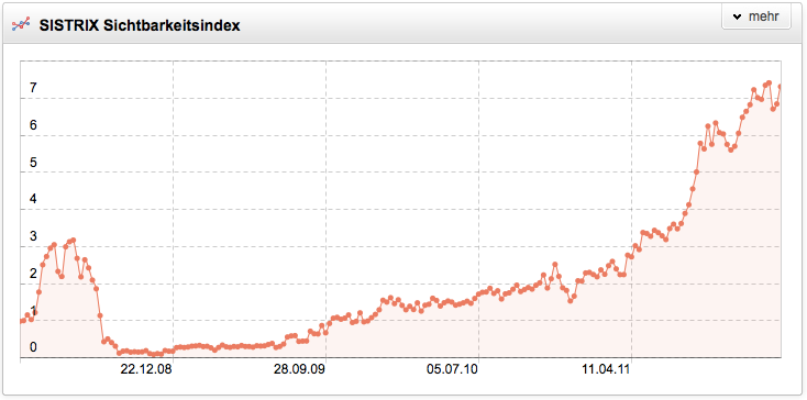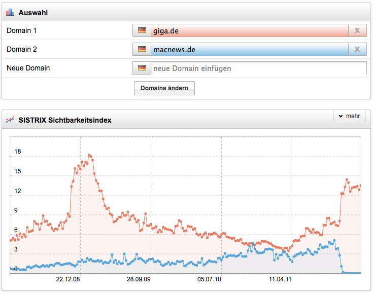 Als ein interessantes Beispiel für Wachstum möchte ich noch die Domain giga.de erwähnen. Grundsätzlich ist SEO-Wachstum insbesondere durch mehr Links und mehr Content zu realisieren. Giga ist es 2011 einigermaßen erfolgreich gelungen beides durch die Integration von macnews.de auf einen Schlag erheblich zu steigern. Solche Mergers & Acquisitions sind sicherlich in Zukunft ein interessantes Wachstumsmodell im SEO-Bereich und ich kann mir vorstellen, dass wir noch einige Konzentrationsbewegungen sehen werden.