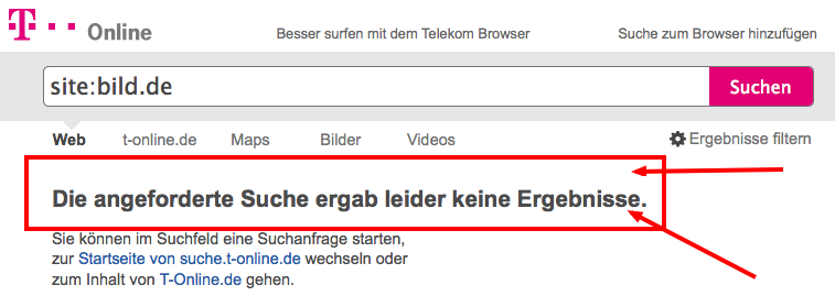 Die Portale web.de, GMX und T-Online sind alle Partner von Google und verwenden die Google-Suche. Bei Google selbst findet man noch Treffer der Zeitungen.