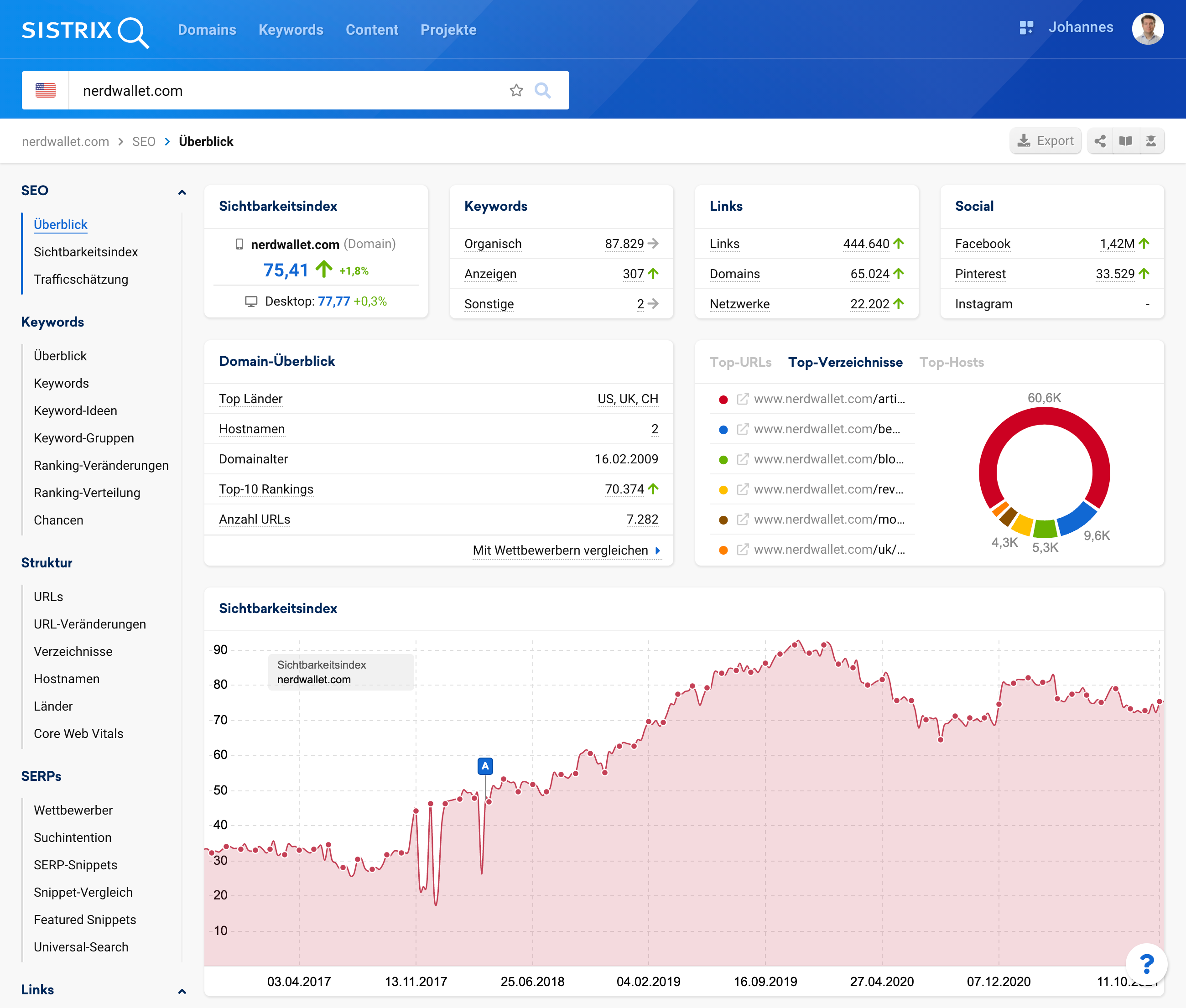 2017 gab es offenbar bereits eine kurzzeitige manuelle Penalty. Den Einbruch im Sichtbarkeitsindex bestätigt Nerdwallet: “[…] in 2017, Google took action against us which temporarily resulted in lower search rankings […]”.