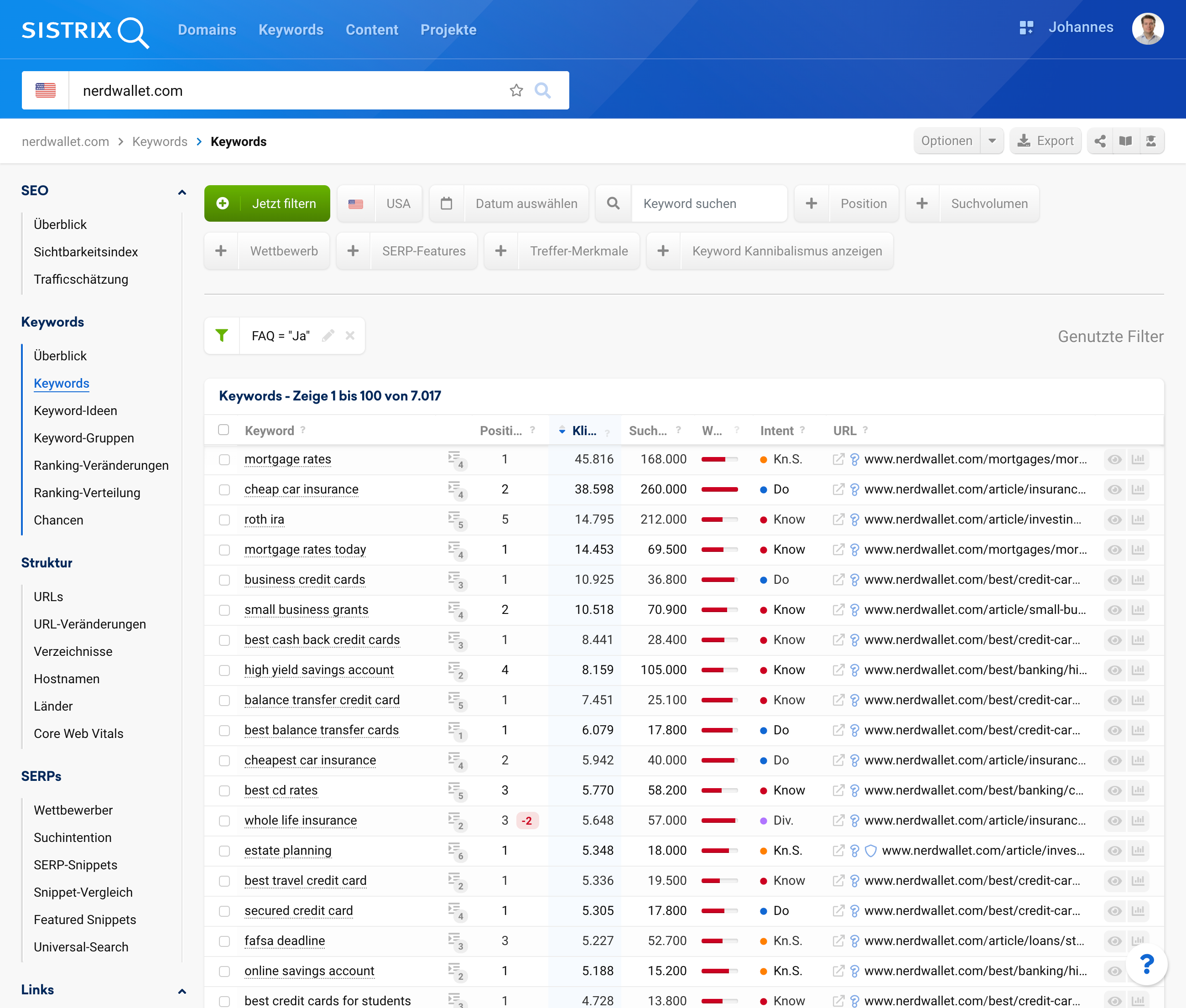 Interessant ist ebenfalls, dass Nerdwallet aktiv auf Treffer-Merkmale wie die FAQ-Integration oder Featured Snippets zielt: “[…] optimizes page structure to increase visibility […] also for Google’s premium features such as FAQs, featured snippets, and video results.