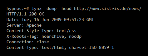 Heute ist mir jedoch aufgefallen, dass die Umsetzung wohl nicht so ganz sauber implementiert ist: während Anweisungen wie „noarchive“ problemlos umgesetzt werden, ignoriert Google ein „noodp“, das dafür sorgen soll, dass das Snippet aus dem Seiteninhalt und nicht mit dem Dmoz-Text erstellt werden soll. Schön sehen kann man das hier im Blog, zuerst die HTTP-Header mit der X-Robots-Anweisung:
