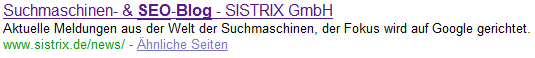Und hier das aktuelle Snippet aus den Google-SERPs zu SEO-Blog mit dem Text aus dem Dmoz: