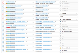 SISTRIX OpenLinkGraphDer mächtigste Bereich verbirgt sich unter dem Reiter „Links“: dort listen wir alle für diese Domain gefundenen Links auf. Da dies aber in der Regel zu extrem langen und unübersichtlichen Listen führt, haben wir eine Reihe interessanter Filter-Möglichkeiten integriert. So lassen sich sowohl Linkquelle als auch Linkziel sehr genau auswählen und filtern. Aufgaben wie „zeige mir alle Links von sistrix.de, die auf eine URL des Verzeichnisses www.seomoz.org/blog/ gehen“, lassen sich damit in Sekunden beantworten. Aber auch die weiteren Filteroptionen haben es in sich: so kann die Suche nach Linktyp (Textlink, Bildlink, 301, 302, Canonical oder Meta-Refresh) häufig interessante Einblicke in Linkbuilding-Strategien geben. Die Suche nach Linktext entlarvt riskant gekaufte Links und weitere Filter nach Follow/Nofollow, Top-Level-Domain sowie Herkunftsland runden diesen Bereich ab. Richtig interessant wird es, wenn man diese Filter kombiniert und zusammen nutzt. Das System ist so konzipiert, dass sich eine beliebige Anzahl von Filtern gleichzeitig setzen lässt. Es werden dann alle gefundenen Links auf die gewünschten Filter hin untersucht und passende ausgegeben.
