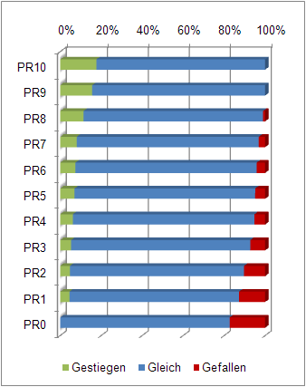 [Update] Hier noch die mittlerweile fast traditionelle Darstellung der PageRank-Veränderungen bei diesem Update. Es ist (mal wieder) recht ausgeglichen – in der Summe haben soviele Seiten PageRank abgeben müssen, wie anderen ihn gewonnen haben.