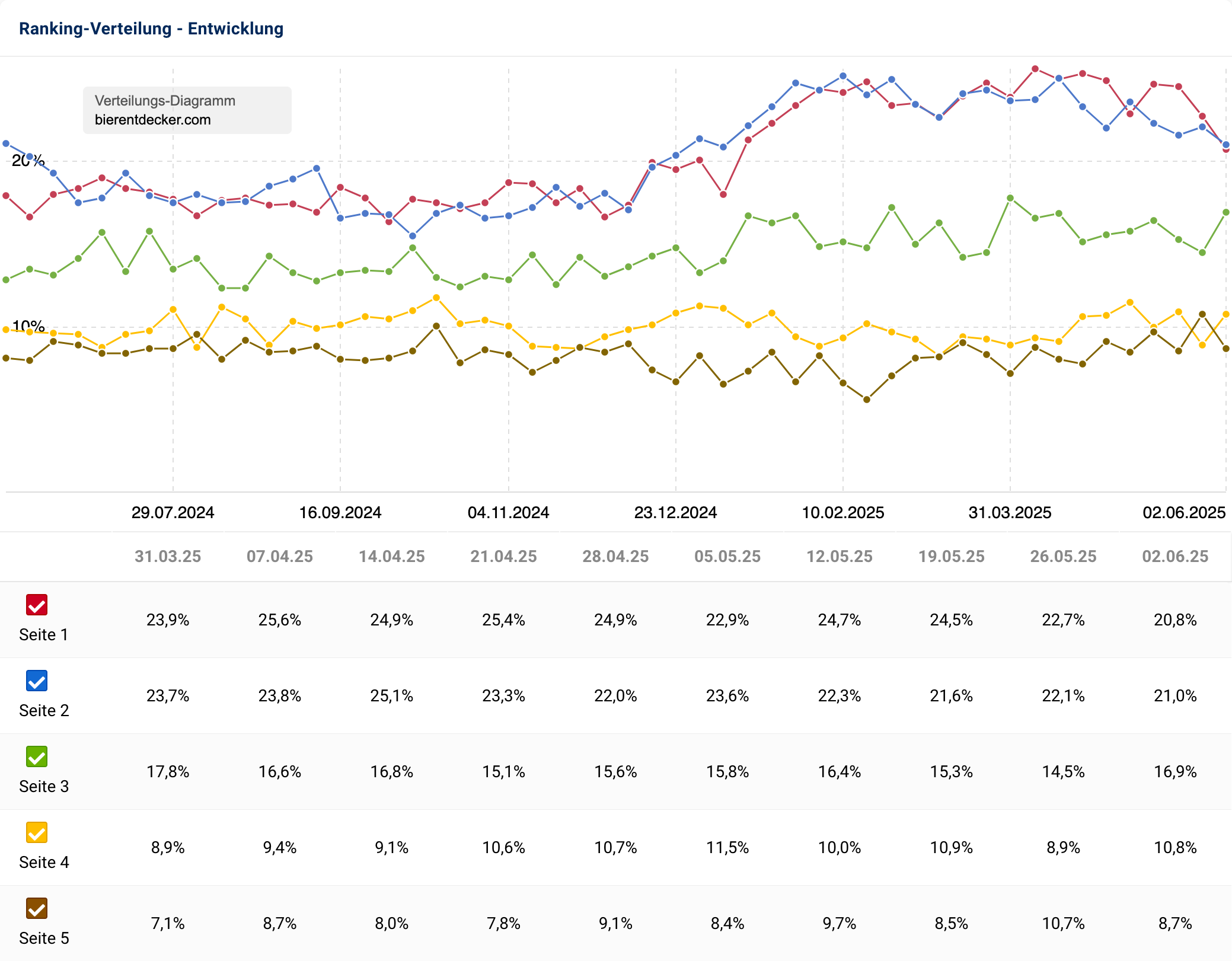 Domainweit ranken 42% aller Keywords auf den ersten zwei Seiten: