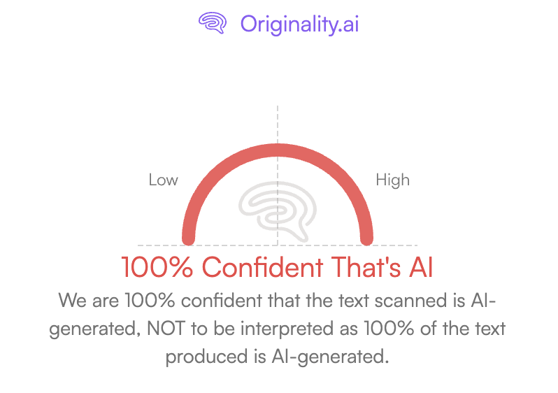 - Tests mit dem KI-Erkennungstool von originality.ai ergaben für mehrere Artikel eine 100-prozentige Konfidenz für KI-generierten Text.