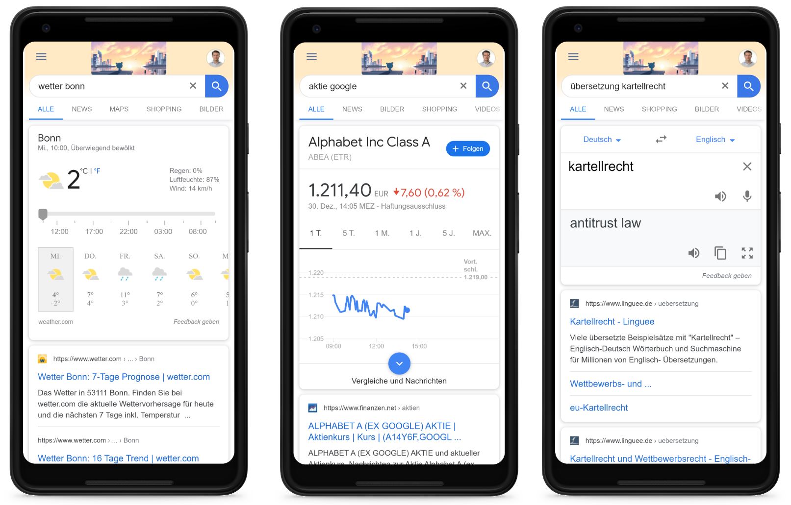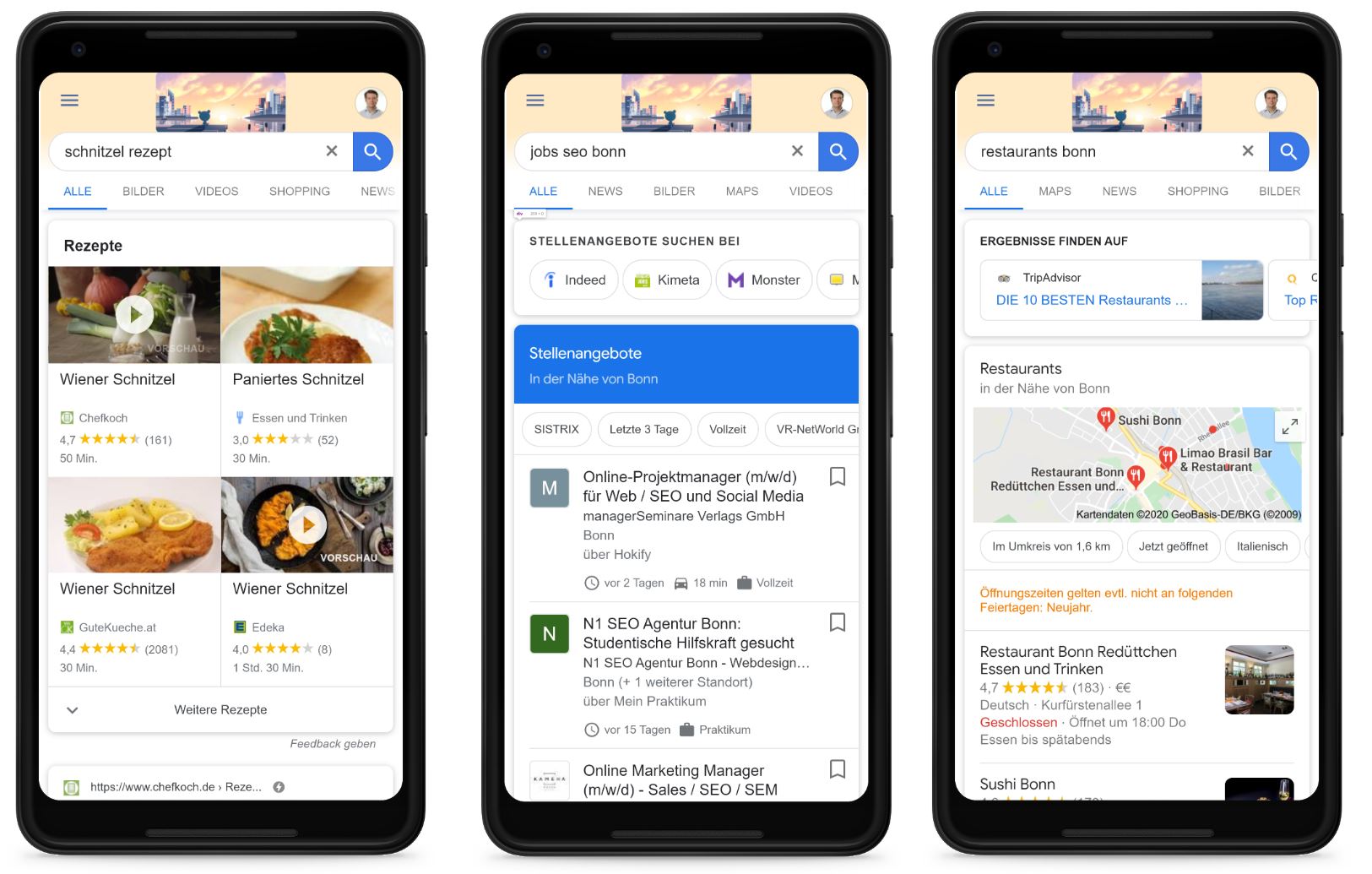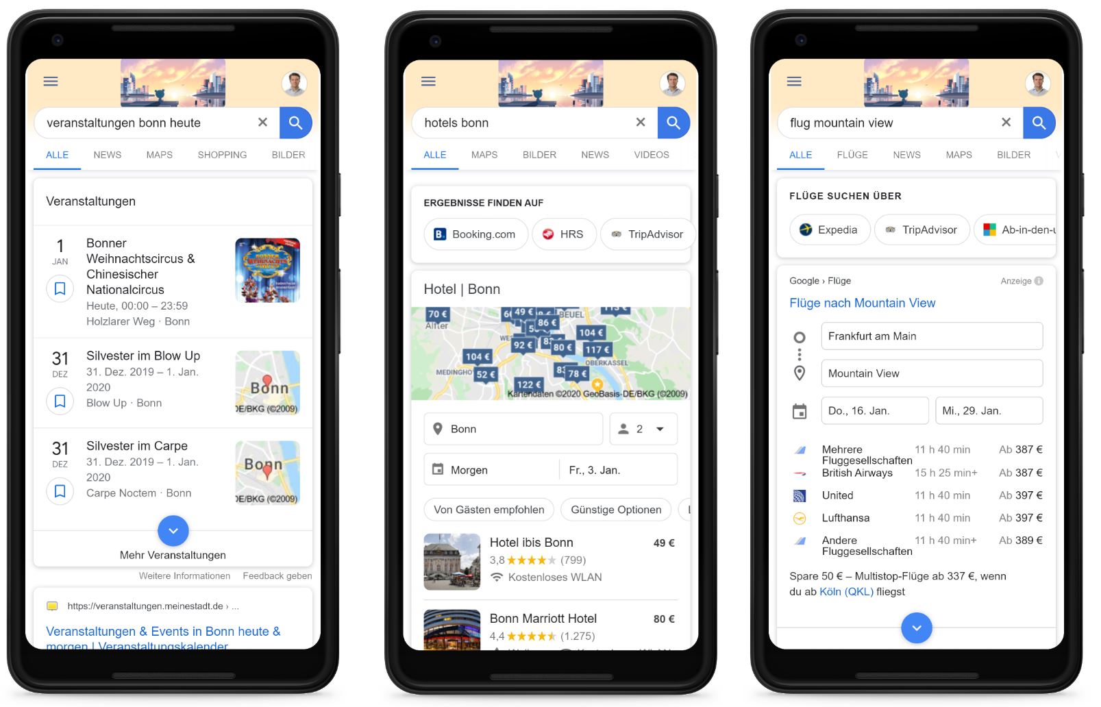 Google ist in seiner Mission, also der prägnanten Zusammenfassung der eigenen Aufgabe als Firma, sehr klar: “Die Informationen dieser Welt organisieren und allgemein zugänglich und nutzbar machen”. War der Werkzeug der Wahl lange Jahre die Auslieferung der zehn relevantesten Webtreffer zu einer Suche (“10 blaue Links”), hat sich die beste Zugänglichmachung von Informationen aus Googles Sicht in den letzten Jahren in vielen Bereichen grundsätzlich geändert: Suchen mit dem Userintent “Visit” werden durch eine Integration des Google Maps-Produktes beantwortet, für Flugsuchen gibt es das Google Flugvergleichs-Produkt, Videos finden sich oft auf Google YouTube und so weiter und so fort. Allein der Deutschland-Start von Google for Jobs und die Ausspielung der neuen Event-Integration in diesem Jahr haben uns allen sehr deutlich gezeigt, wem die SERPs gehören.