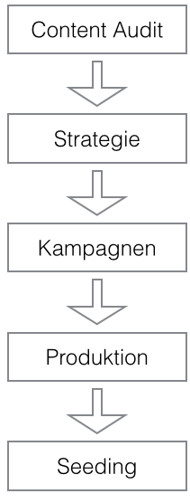 Das Seedings steht an, wenn der Content produziert ist und gestreut werden muss. Man kann dies anhand folgender Schemazeichung (frei von Sepita übernommen) erkennen – (rechts).