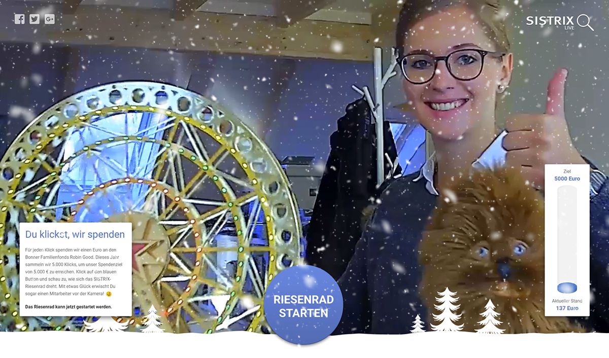 So sehr die SEO-Welt dieses Jahr wieder in Bewegung war, wir bei SISTRIX halten auch 2017 an einer Tradition fest und wollen mit unserer Weihnachtsaktion etwas Gutes tun. Wie jedes Jahr zu Weihnachten starten wir unsere Riesenrad-Spendenaktion – und Du kannst live dabei sein und mitmachen!