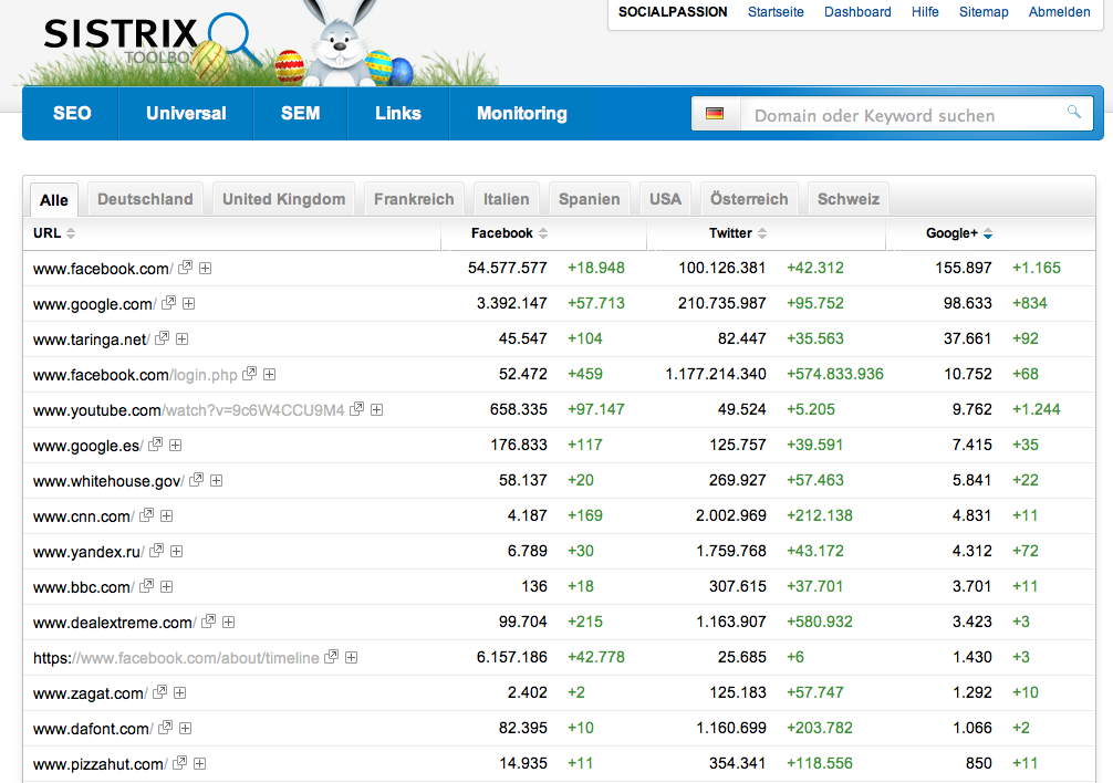 Social Signals Smash (Quelle: Sistrix Toolbox)