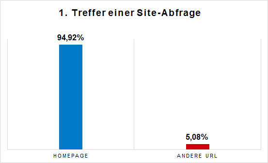 Um zu erfahren, wie häufig dieser Fall überhaupt auftritt, habe ich Site-Abfragen von 10.000 Domains durchgeführt und dabei überprüft, ob die Homepage oder eine andere Unterseite als erster Treffer ausgespielt wird: