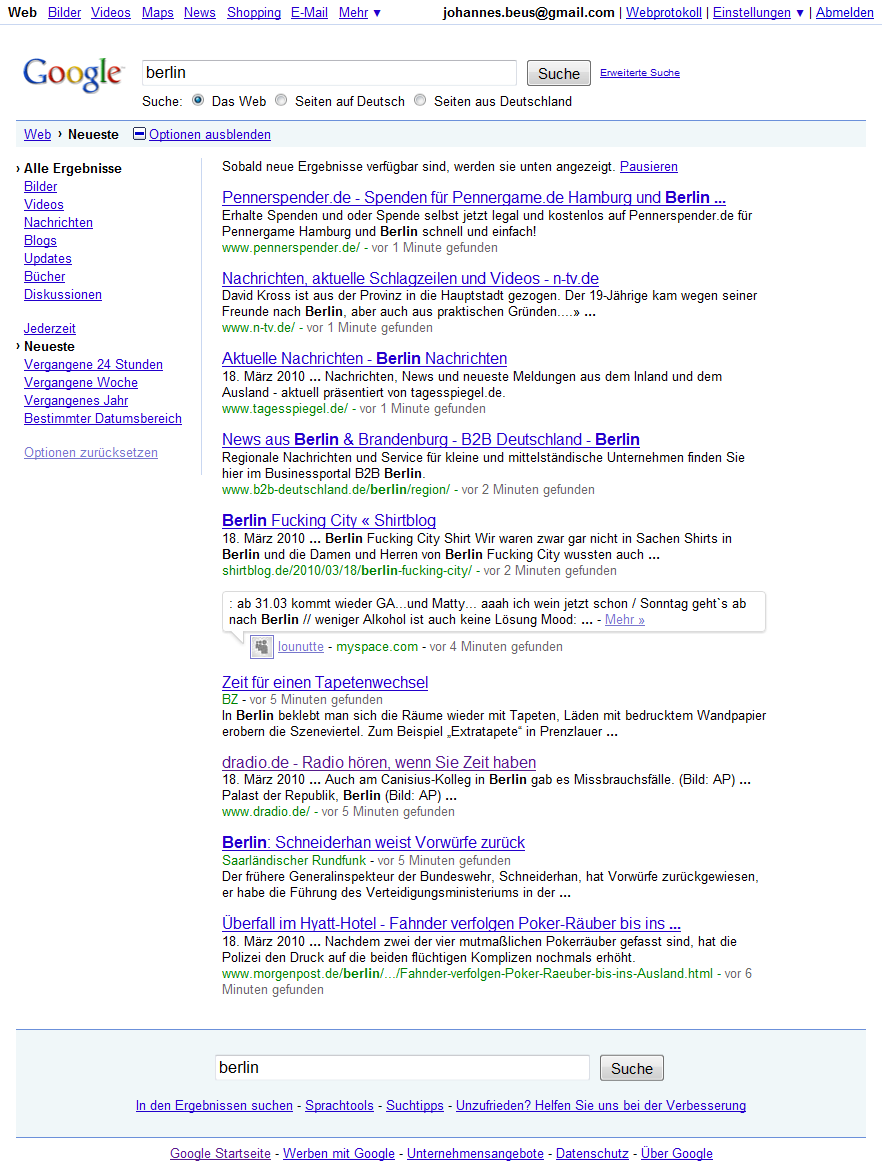 [Update] Jetzt gibt es auch von Google einen Blogpost zum Thema Echtzeitsuche. Interessant finde ich besonders diesen Satz: