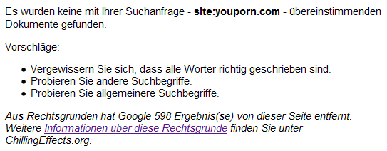 Um mir das Vorgehen etwas genauer anzusehen, habe ich einige Keywords der SISTRIX Toolbox darauf untersucht, ob und wo Google nicht die kompletten 10 Treffer auf der ersten Seite anzeigt, sondern durch einen Hinweis auf ChillingEffects.org darauf aufmerksam macht, dass ein oder mehrere Seiten unterdrückt werden. Dabei habe ich nur solche Fälle gezählt, die einen Bezug zu deutschen Gesetzen haben – allgemeine Ausschlüsse, zum Beispiel Aufgrund von DMCA-Requests, bleiben hier außen vor.