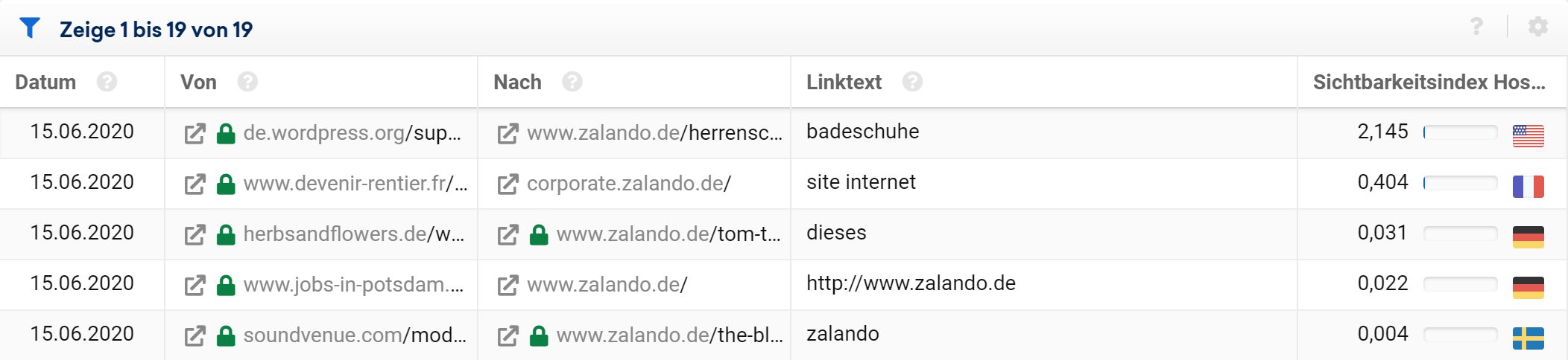 In dieser Tabelle findest du Links die in letzter Zeit neu gefunden wurden. Wir zeigen dir folgende Informationen: