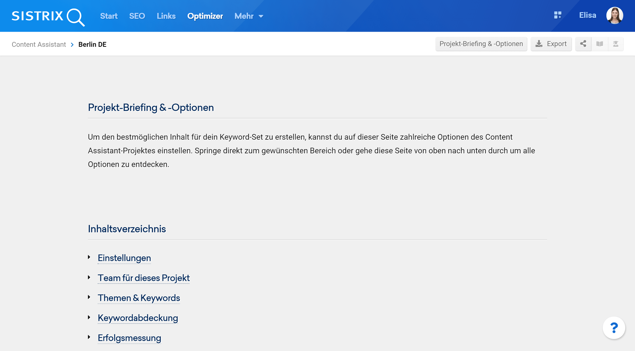 Projekt-Briefing & -Optionen