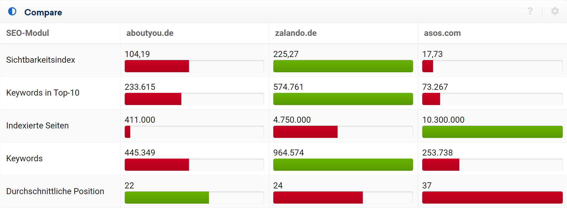 - Vergleich der Sichtbarkeitsentwicklung mit weiteren Domains