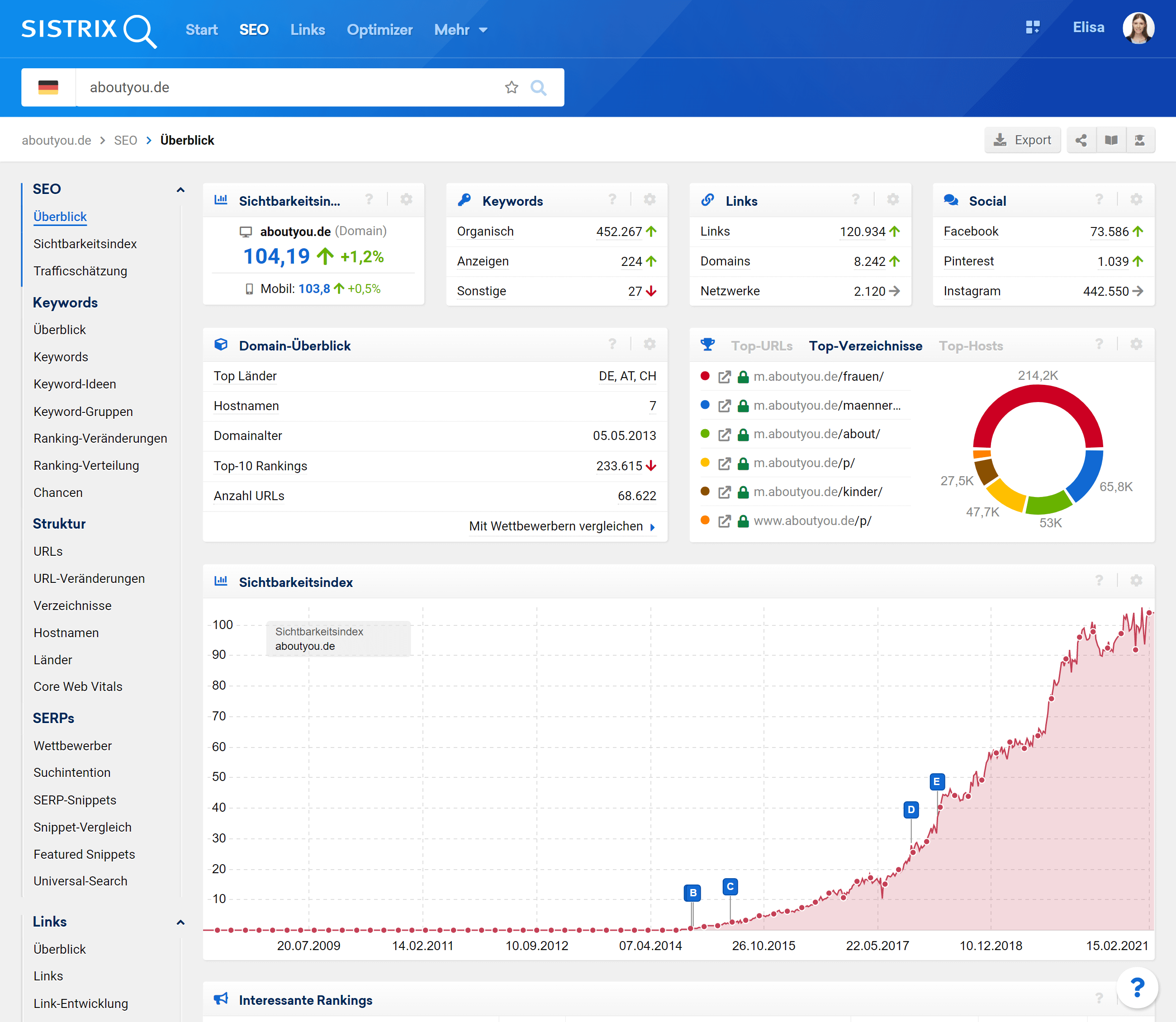 Ausführliche Informationen zum Sichtbarkeitsindex findest Du auf dieser Seite SISTRIX Sichtbarkeitsindex: Erläuterung, Hintergründe & Berechnung.