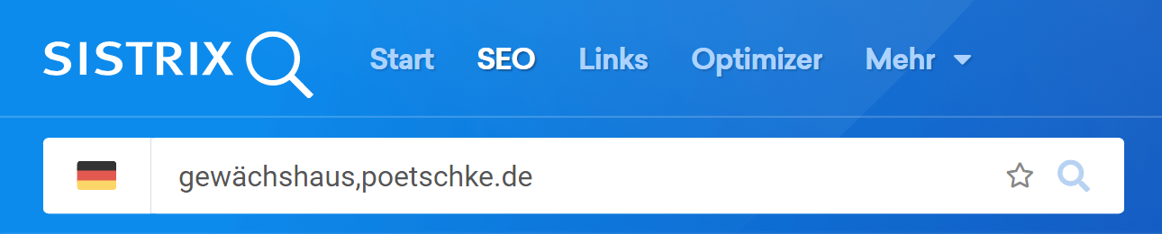 Alternativ kannst du das Keyword, gefolgt von einem Komma und der Domain in die SISTRIX-Suche eingeben.