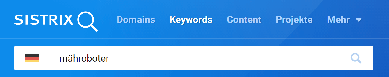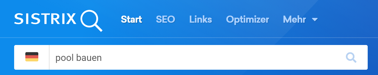 Die Keyword-Übersicht ist dein erster Anlaufpunkt zur Analyse eines spezifischen Keywords (Suchbegriffs). Um zur Keyword-Übersicht zu gelangen, gib‘ das Keyword in die Suchleiste von SISTRIX ein und sende die Suche ab: