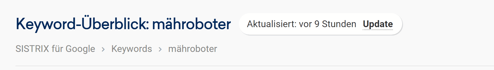 Der „Update“-Button ermöglicht die Aktualisierung von Suchergebnissen auf Knopfdruck innerhalb weniger Sekunden. Mehr zu den Hintergründen erfährst du in diesem Artikel.