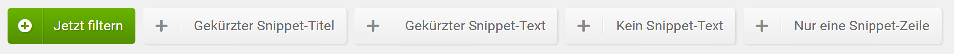 Mit dem Filter “Nur eine Snippet-Zeile“ findest du alle Ergebnisse, bei denen Google nicht die zwei möglichen Textzeilen innerhalb der Snippetvorschau anzeigt, sondern sich dafür entschieden hat, nur eine zu verwenden. Dies ist ein weiterer Ansatzpunkt für eine Snippet-Optimierung, um von den gleichen Ranking-Positionen mehr Traffic zu gewinnen.