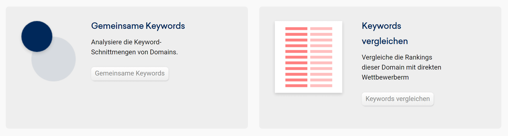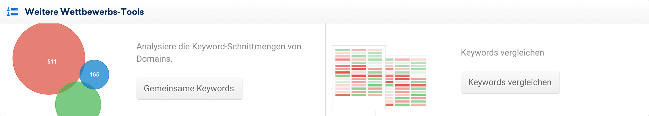 Die gemeinsamen Keywords werden in einem Venn-Diagramm dargestellt. Details zu den Keywords selbst findest du in der Tabelle darunter.