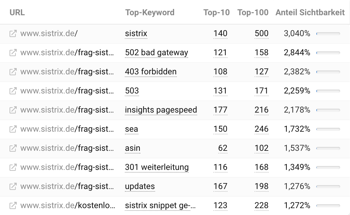 - Nutze die erfolgreichsten URLs als Blaupause für deinen SEO-Erfolg.