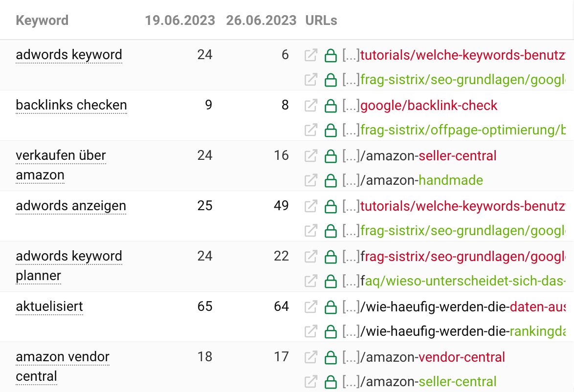 - Finde heraus, bei welchen Keywords sich zwischen zwei Zeitpunkten die URLs verändert haben.