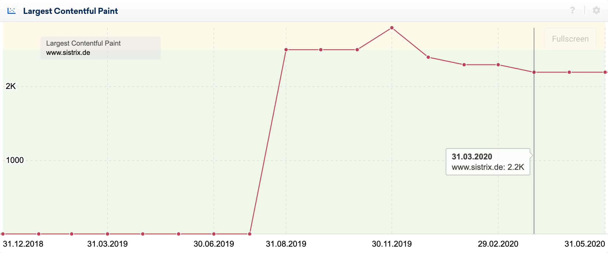 Zur besseren Einordnung der Messwerte haben wir den Hintergrund des Diagramms entsprechend den Empfehlungen von Google in grün, gelb und rot eingefärbt.
