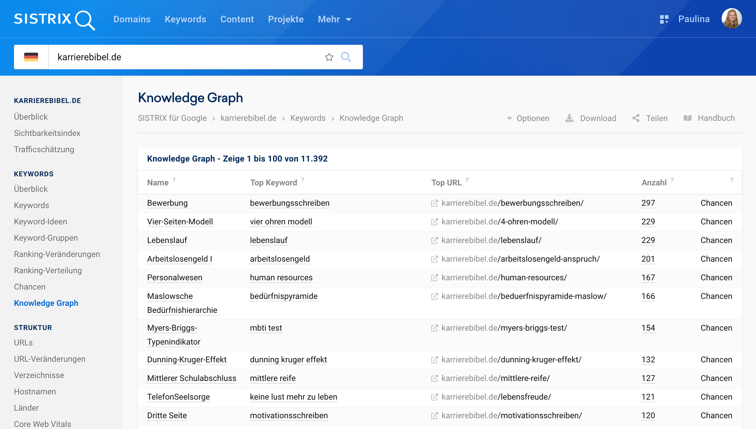 So kannst du gezielt einzelne Bereiche deiner Domain mit Hilfe der Knowledge Graph-Auswertung analysieren und optimieren.