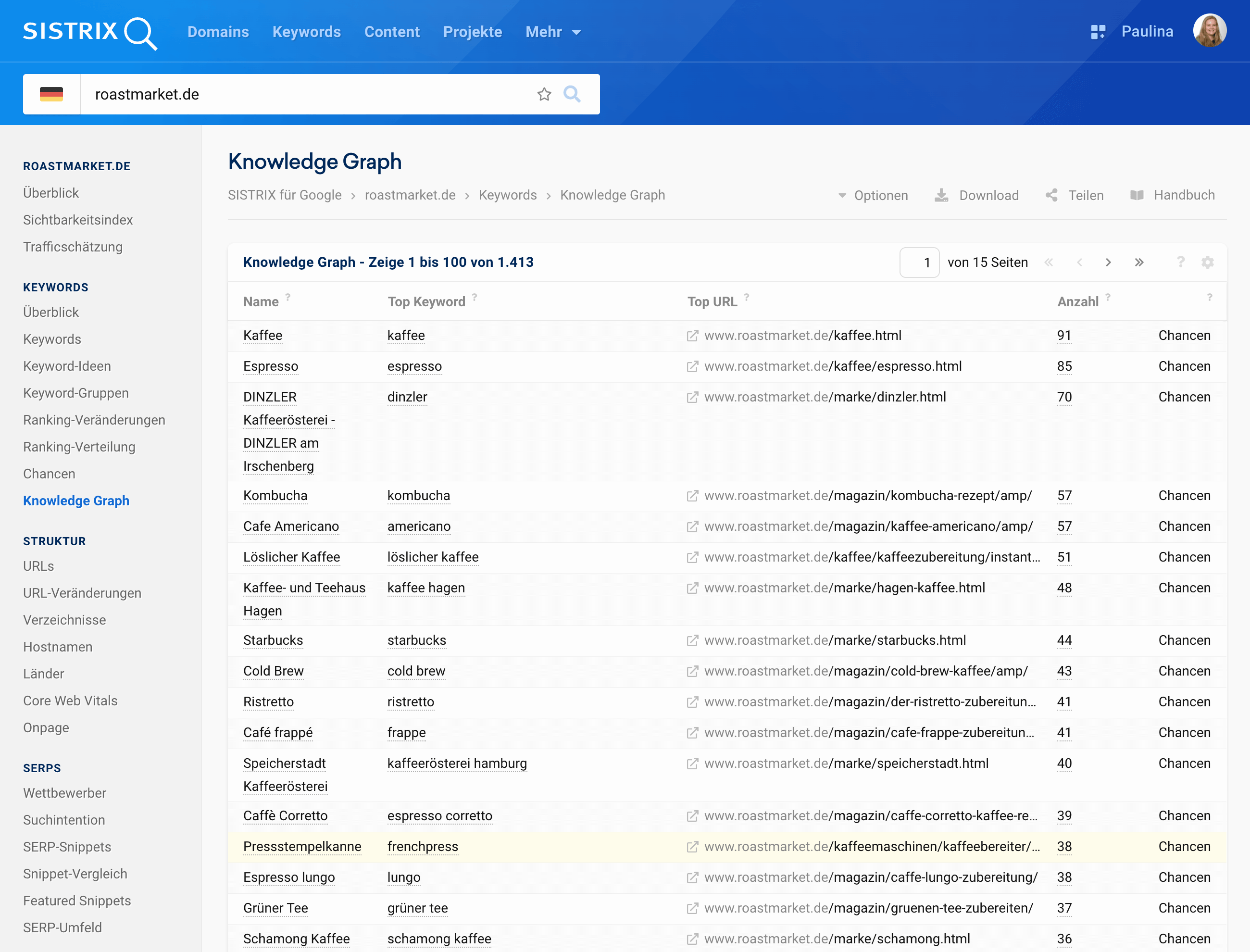 Wir gehen nun im Folgenden darauf ein, wie du die Analysefunktionen in SISTRIX zum Google Knowledge Graph für deine SEO-Arbeit nutzen kannst.