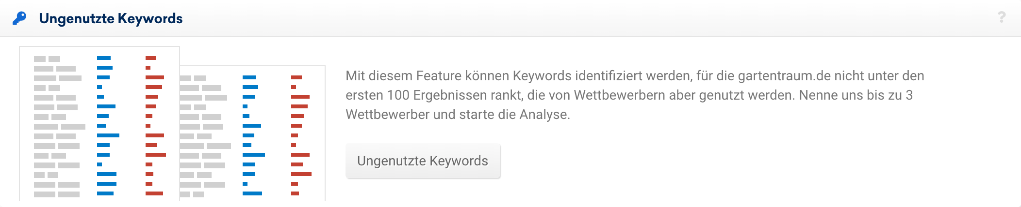 Funktions-Vorstellungsbox für die "Ungenutzten Keywords" im Unterpunkt "Chancen" in SISTRIX..