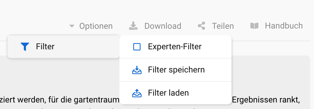 Optionen: 1 Aktiviere den Experten-Filter, lade bereits gespeicherte oder speichere neue Filter.