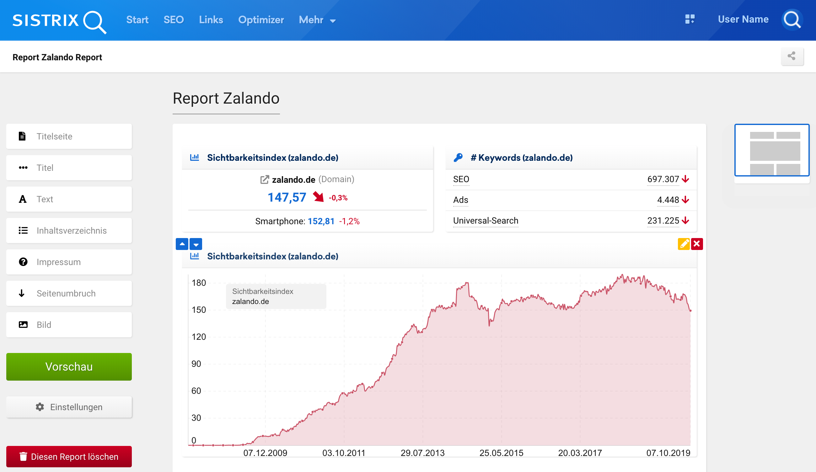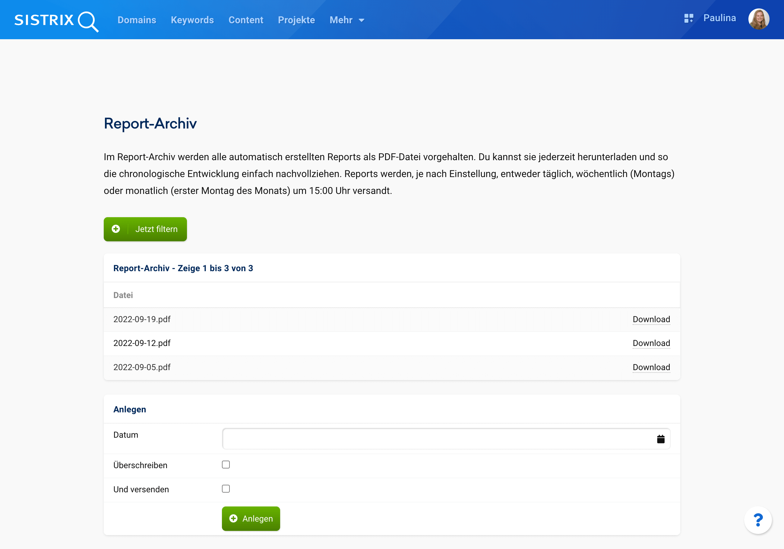 Die Gesamtzahl der maximal zu erstellenden Reports hängt von deinem gebuchten SISTRIX Paket ab.