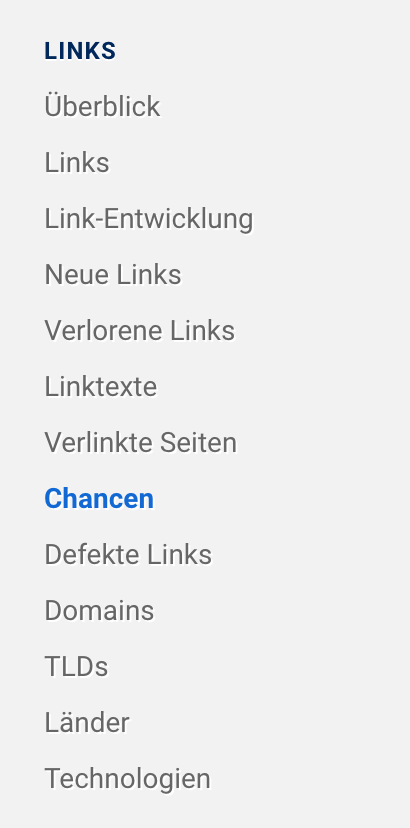 Die Funktion „Chancen“ findest du, wenn du deine eigene Domain in den Suchschlitz eingegeben hast, und dann in der Navigation auf der linken Seite im Bereich „Links“.