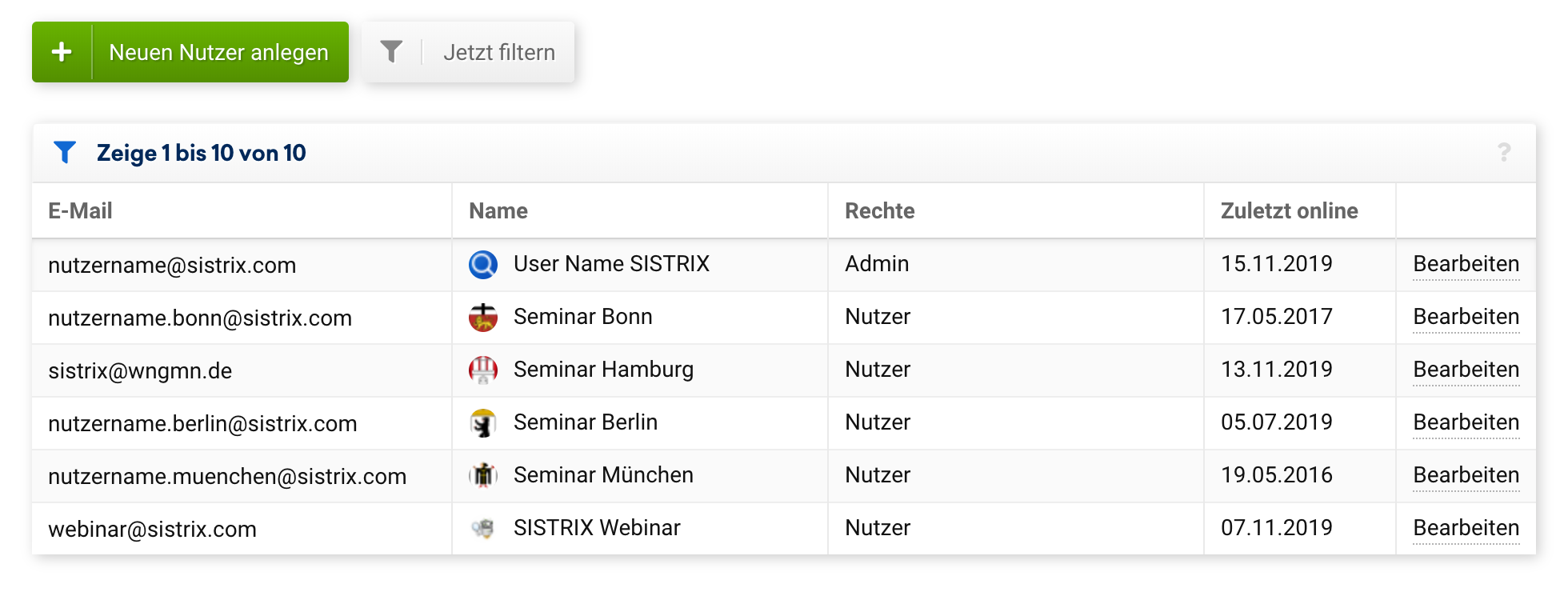 Du kannst SISTRIX abhängig von deinem genutzten Paket mit bis zu 12 Teammitgliedern deiner Firma ohne Mehrkosten nutzen. In der Benutzerverwaltung kann der Hauptnutzer des Account neue Profile erstellen und alte editieren oder löschen.