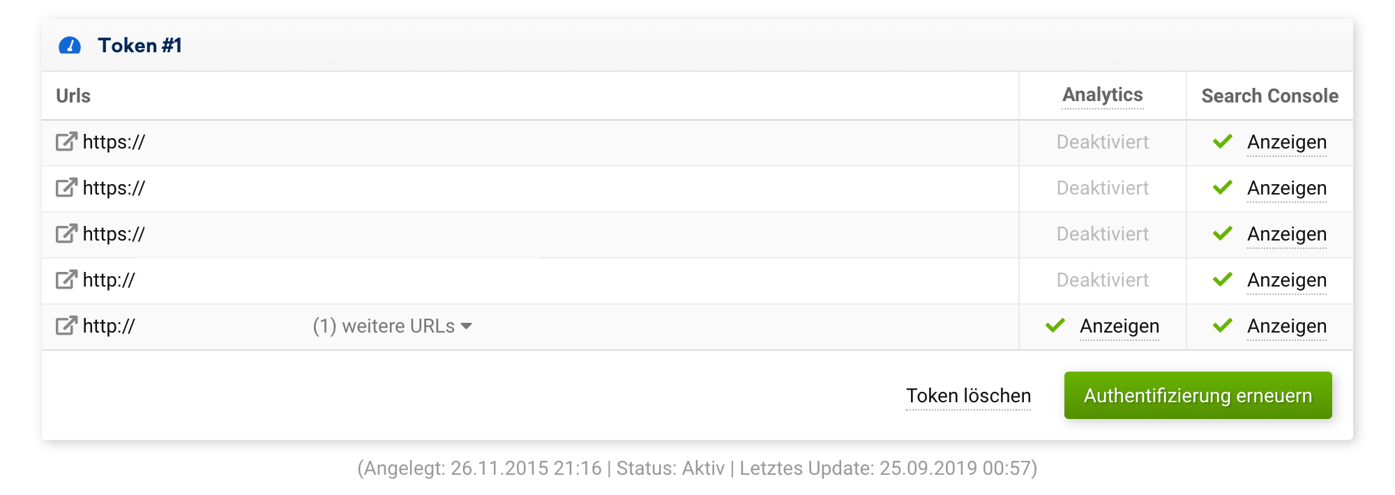 Hast du deine Google-Accounts verbunden, siehst du bei den Domains, die hinzugefügt wurden, weitere Auswertungen in der linken Navigationsleiste.