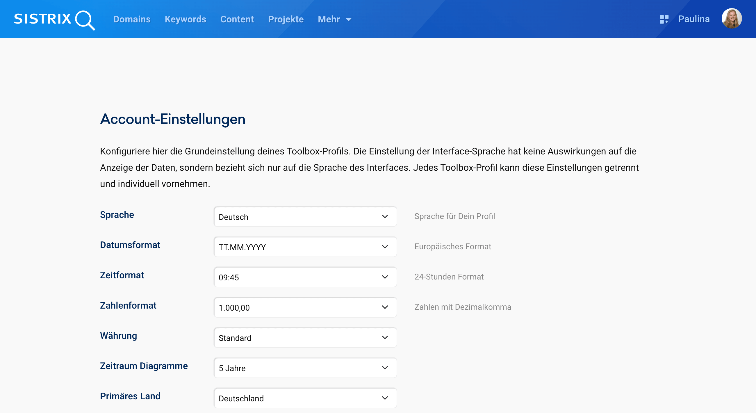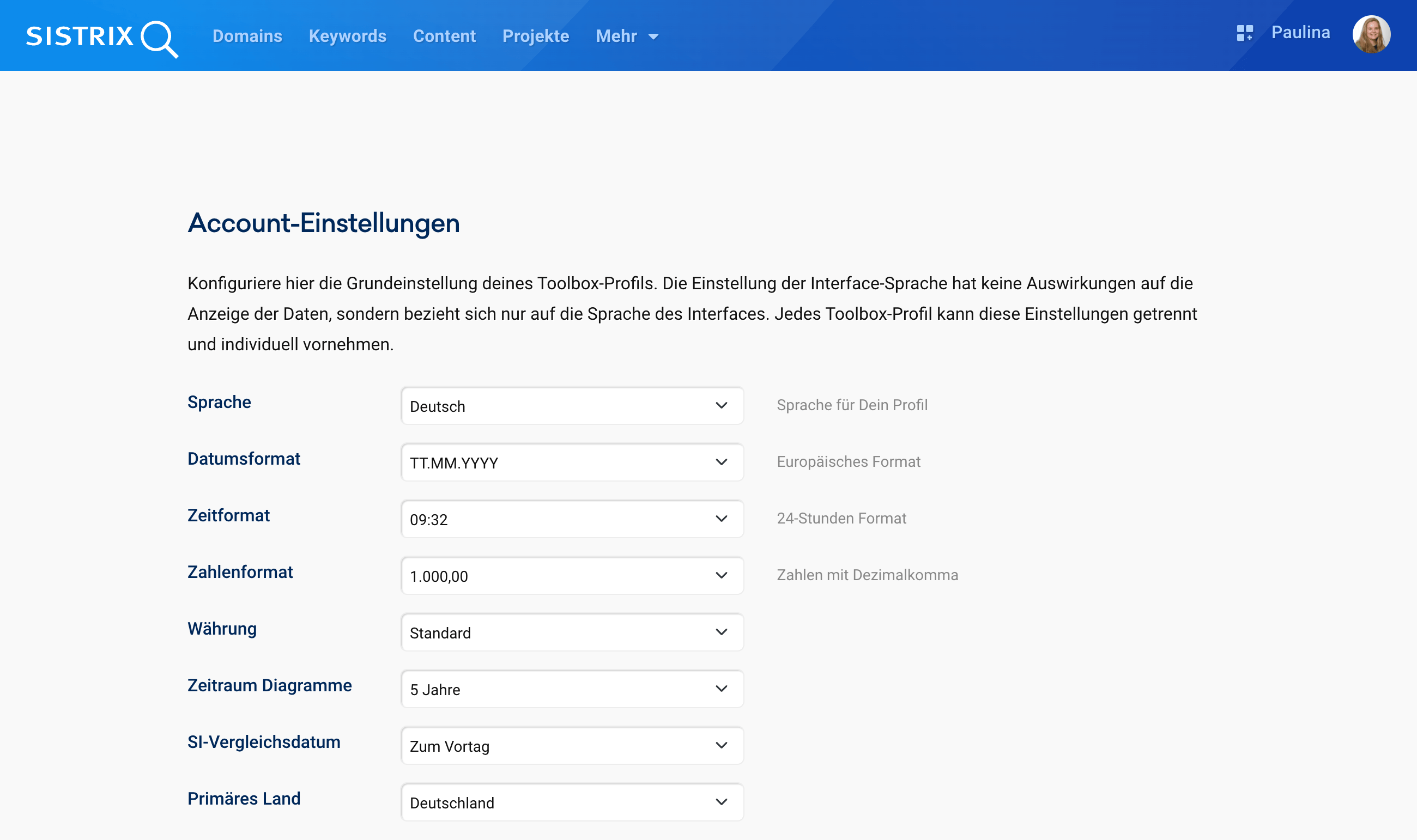 Bei der Unterscheidung der SISTRIX Profile in der täglichen Zusammenarbeit helfen individuelle Bilder. Deswegen kannst du hier ein Avatar-Bild hochladen, welches dann für das jeweilige Profil angezeigt wird. Auch euer Firmenlogo kannst du hier hochladen.