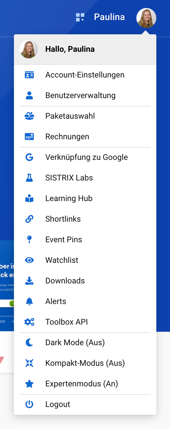 Über den Button Logout ganz unten kannst du dich aus SISTRIX ausloggen.