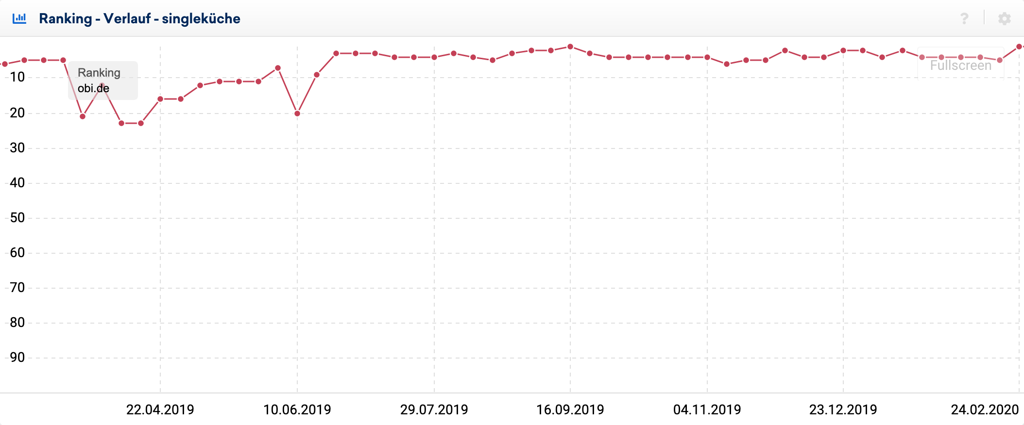 Nehmen wir noch einmal das Beispiel des Rotweins: Über den Button, der aussieht wie ein Diagramm, ganz rechts in der Spalte gelangen wir direkt zur Ranking-Entwicklung.