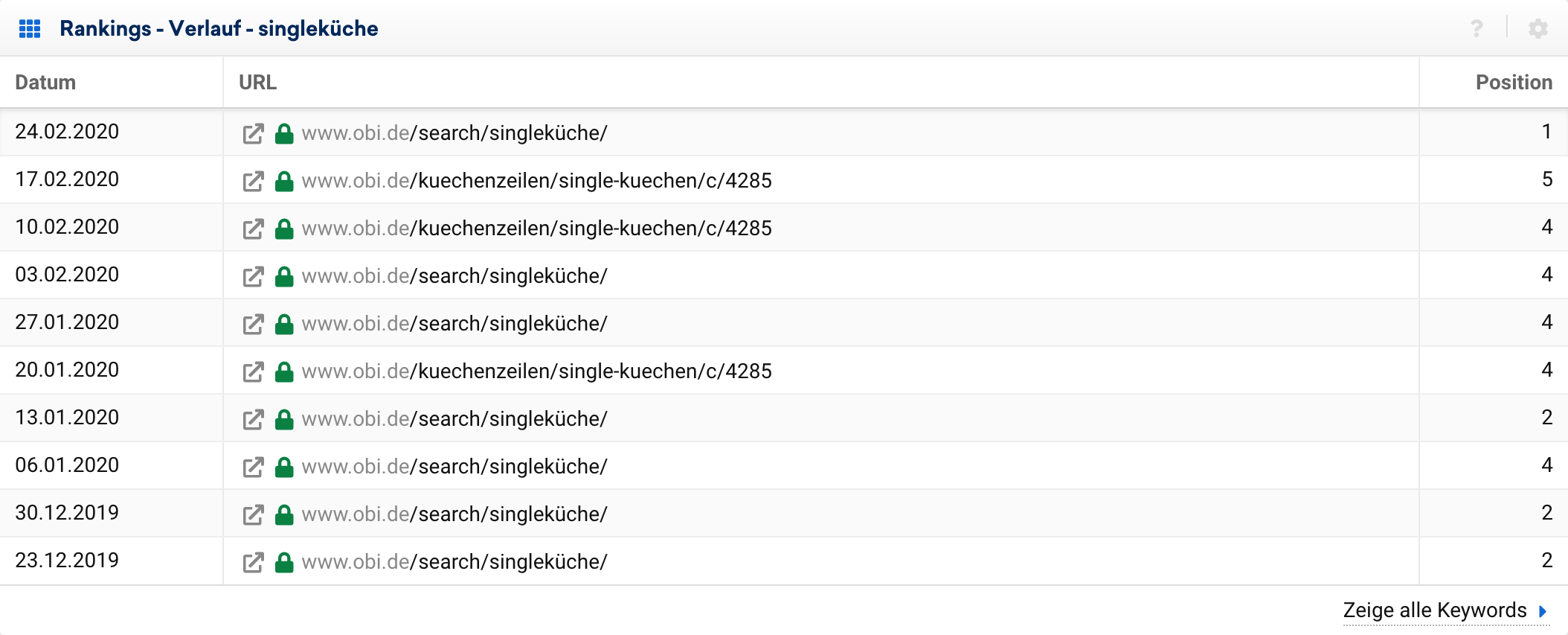 Schauen wir uns die URL-Veränderungen an, lässt sich schon während der Übergangsphase prüfen, ob die Umstellung einen negativen Einfluss auf die Rankings hatte.