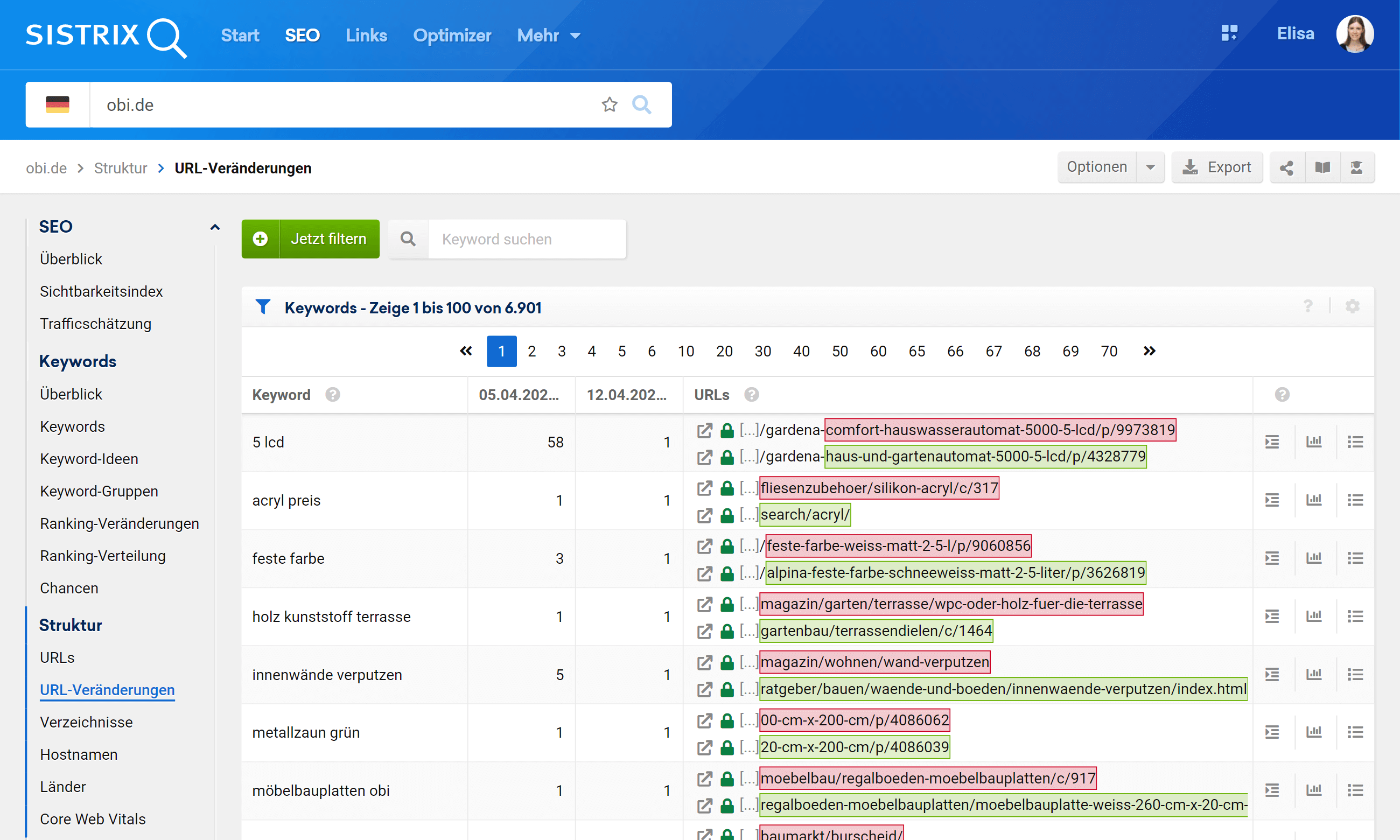 Wo finde ich die URL-Veränderungen in SISTRIX?