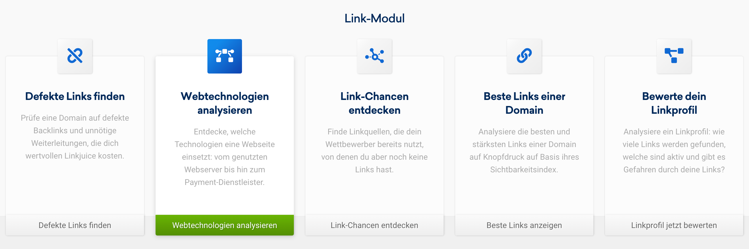 Als Teil des SISTRIX Link-Moduls bietet uns die Funktion „Webtechnologien analysieren“ spannende Insights, welche sonst nur durch alleinstehende Tools abgedeckt werden. Die gewonnenen Informationen lassen sich zur Erfolgskontrolle, Interpretation des Sichtbarkeitsverlaufes sowie zur Analyse der Wettbewerber nutzen.