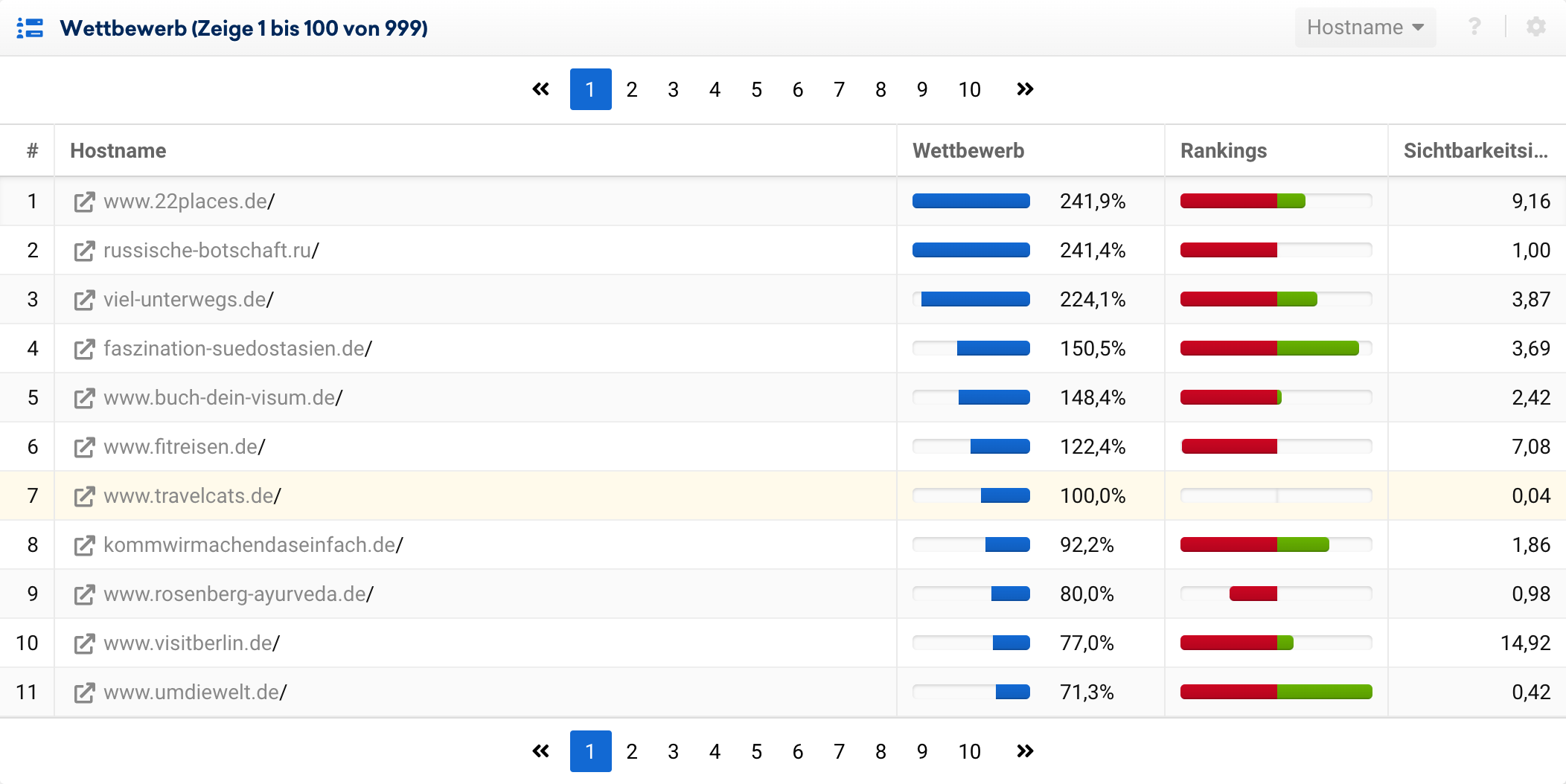 Nun hast du einen guten Überblick über das Linkprofil deines Wettbewerbers bekommen. Vielleicht sind dir schon Ideen gekommen, wie du selbst neue Links gewinnen kannst. Im nächsten Schritt kannst du über die Funktion Chancen, die in diesem Tutorial näher beleuchtet wird, bis zu drei deiner Wettbewerber mit deiner Domain vergleichen. So siehst du auf einen Blick, von wem deine Wettbewerber Links bekommen, du aber noch nicht.